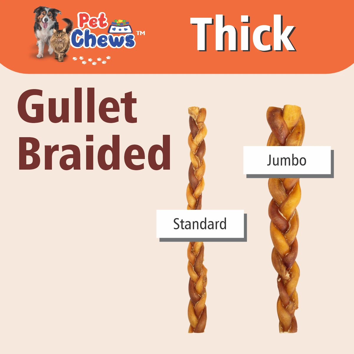 A Gullet Braided is a natural dog treat made with strips of dehydrated beef esophagus braided into a braid. It’s rich in protein and glucosamine, easy to digest, promotes joint health, contributes to dental hygiene, and offers a fun, long-lasting chew.
