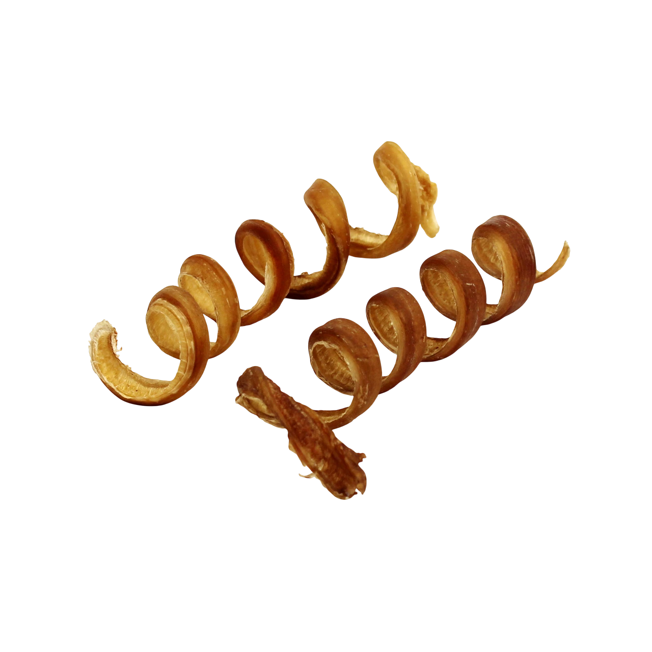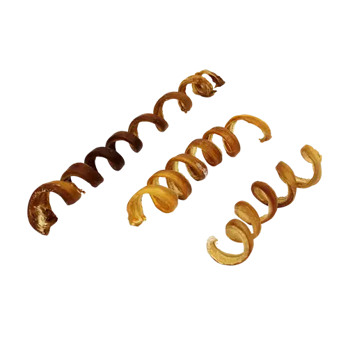 A Bully Curly is a natural dog snack made with 100% dehydrated beef Bully Stick, molded into a spiral shape. Its twisted design makes it an attractive and fun treat, as it prolongs chewing time and stimulates your pet in a different way than traditional snacks. This treat is rich in protein, low in fat, and completely free of chemicals, preservatives, or additives, making it safe and healthy for dogs of all ages and sizes. In addition, its firm texture contributes to dental care by reducing plaque and tartar buildup, promoting healthy teeth and gums. Beyond the nutritional value, the Bully Curly also helps satisfy the natural instinct to bite, keeping your dog busy and reducing stress or anxiety, while enjoying a delicious, safe, and long-lasting snack.